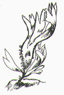 Healing Wise Come April and the blood starts stirring in the Northern California seaweed wildcrafter. Now's the time for the annual Easter egg hunt for fresh, tender, red dulse. Waves surge, brilliant spring sunlight dances with sudden rain squalls. I return to the shaded nooks, the cool crevices that are home to this cool-loving sea vegetable. Sometimes, as in the warm-sea El Nino years, there is scarcely a rust-red blade waving in the dulse crannies. Other years magnificent blooms appear, with ribbon-like fronds up to three or four feet long. With dulse, I never know when, or how much. Always it reappears in the same precise place, its rare home niche in the Mendocino intertidal zone. Dulse seduces me, hypnotizes me with its waving red fronds. I may harvest a large load, only to take it home and find that most dries looking grey. Or a three-day rainstorm may blow up, and the dulse rots before I can get it dry. (Into the garden with it!) Or, frequently, clouds slow the drying process. Then the dulse sweats salt, and dries looking like a frosted Christmas tree. In vain I insist to buyers that frosty dulse is perfectly good. Half-price dulse, anyone? Occasionally, once every few years, we stash a few huge loads of deep red dulse dried quicly in the hot sun. Then we have a highly marketable product. Dulse is the only major sea vegetable which comes into the American diet from Northern European cultures. The massive dulse beds of Grand Manan Island, in New Brunswick off the Canadian Atlantic Coast, yield tons of dulse for the world market. Maine wildcrafters sell all the dulse they can get from the rocky Maine Coast. Here in Mendocino dulse is scarece. Confined to unusually cold locations, the best fronds are usually gone by the time the weather settles down to good drying days. There must be some big patches of dulse farther north, in Washington State up into Alaska. We could sell a lot more good North Pacific dulse than we can harvest. (North Pacific wildcrafters, do you read me?) Dulse is deep red to reddish-brown, growing on the mid-intertidal zone. Its blade arises directly from the holdfast. The blade is deeply cleft or branched, up to a few inches wide and several feet long. Dulse may look like a flame painting in the surf, vaguely reminiscent of a waving palm; hence its species name, palmata. The shape of the blade varies with its location. I think Atlantic dulse fronds tend to be broader and shorter, while Pacific dulse often sends out long ribbons up to two inches or so wide. Mendocino dulse grows intermingled with a dazzling array of other deep red sea vegetables. Often I have to tast it to identify it. Dulse is slightly crisper in texture than other leafy red sea vegetables. Fresh, it tastes like potato peelings. Look for dulse in low-tide tidepools and sea-filled crevices in locations shaded from morning sunlight. Harvest dulse by pulling the longer blades from the rocks, leaving shorter blades for regeneration. Avoid grey or roughened blades. Sometimes dulse looks beautiful in the sea but dries a dead-leaf grey, so don't go crazy on harvesting a big patch you've just discovered (like I'll probably do next season!) Spread the dulse in a mat on screens to dry. If you harvest midday, hold the crop in cool storage overnight and spread it in the morning, so it will be mostly dried by dusk, to avoid that frosted salty look. It can be flipped like a pancake mid-afternoon. If you leave it out in the dew overnight, it will fade to pinkish-white. Dried dulse is red, soewhat leathery in texture, and intensely salty even if it has been rinsed in fresh water to remove sand. It has a distinctive "dulse" taste, and becomes mushy quickly in boiling water. Grand Manan Island harvesters expose dried dulse to humidity for a while, softening it and making it possible to cram a lot into a small space. I store mine bone-dry. Dulse Recipes/Cooking Ideas || Dulse Nutritional & Healing Notes | |